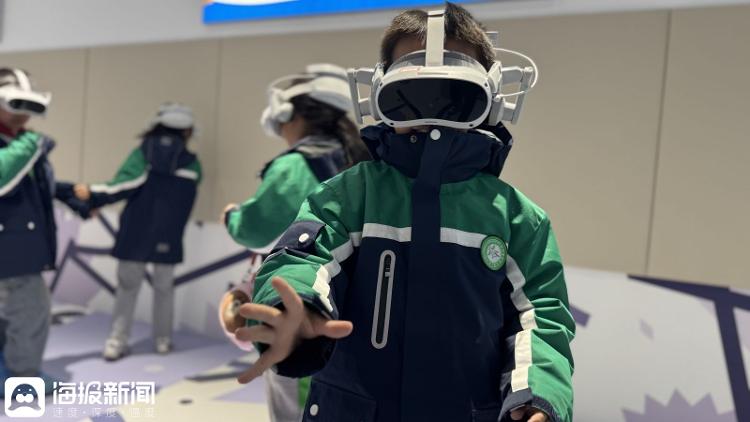 万艘漕船在身边争流,运河波涛在脚下奔涌,VR视效带来的震撼体验让孩子们连连惊叹。这种沉浸式体验让书本上的历史真正“活”了起来,变得可触可感。